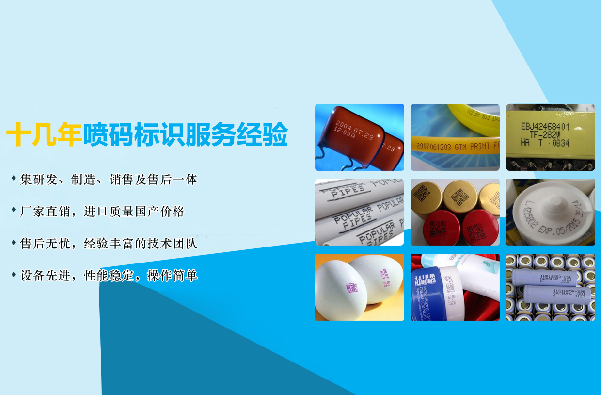 歡迎光臨我們的網(wǎng)站!我司是專業(yè)噴碼標(biāo)識服務(wù)商,產(chǎn)品有小字符噴碼機、二維碼條碼噴碼機、手持噴碼機、激光噴碼機等并提供噴碼機加工,免費打樣和試機